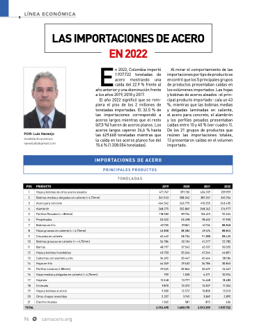 Analista Económico naranjolb@gmail com 1 Hojas y bobinas de otros aceros aleados 3 Acero para concreto