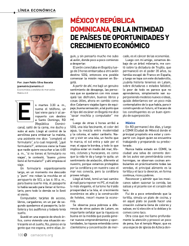 guin y sin pensarlo mucho me subo al avión donde poco poco a a a a a a poco poco comienzo a a a a a despertar El avión avión conectaba en Bogotá y lue- go go de de 3 horas embarcaba a a a á a a a a a a a otro avión avión destino SDQ entonces era posible comenzar la misión reponer en en en Bo- gotá A partir de de de ahí me bajó un genuino sentimiento de de de desapego las perso- nas que que se se quedaron con mis cosas ojalá las disfruten buenos libros y cosas útiles ahora en en en cambio como dice Calamaro viajaba ligero de equi- paje buena sensación a a a a a a a a a a a á á tal punto que el el tipo del escáner en en en Bogotá me me dice “sacar mochila y computador” me me reí Luego de de otras 4 horas arribó a a a a a a a a SDQ una isla fascinante el el color del agua la la la la mezcla entre modernidad y y la la la la colonia el sabor caribeño Na- cer y y y vivir e en en una isla un un hecho que te te marca el el el sol entra y y y sale por el el el mar mar mar el el el el agua te te bordea y y todo lo que implica estar en medio del mar mar tifo- nes nes nes ciclones y y huracanes es es es es es como que la la vida te te te da da y y luego te te te quita un sentimiento de aislación diferente al nuestro nuestro porque estamos protegidos por por la la cordillera cordillera y en nuestro nuestro caso el mar nos conecta pero la la cordillera cordillera provee refugio Llegó al al al hotel tomó un taxi camino al al al al mall mall para reponer mi mi PC el el el el mall mall de lo más elegante el el el el turismo ha traído prosperidad á a a a a a a a a a la la la Isla el el el crecimiento económico es es es alto y la la la la construcción de hoteles resort mueve la la econo- mía Se observa poca pobreza a a a a a a a a a dife- rencia de de otros países de de Latam es es es importante señalar que que que la la la riqueza es es es buena e en en en en en la la la medida que que que pueda gene- rar nuevos emprendimientos y opor- tunidades la riqueza entendida como clientelismo y concentración de de mer-