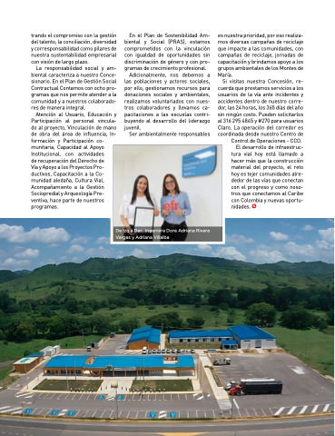 es es es nuestra prioridad por eso realiza- mos diversas campañas de de reciclaje que impacte a a a a a a a a a a a a a a a las comunidades con campañas de de de reciclaje jornadas de de de capacitación y y brindamos apoyo a a a a a a a a a a a a a a los los grupos ambientales de de los los Montes de de María Si visitas nuestra Concesión re- cuerda que prestamos servicios a a a a a a a a a los usuarios de de de de de la vía ante incidentes y accidentes dentro de de de de de de nuestro corre- dor las 24 horas los los 365 días del año sin ningún costo Pueden solicitarlos al 316 295 4845 y #270 para usuarios Claro La operación del corredor es es es coordinada desde nuestro Centro de de de de de Control de de de de de de Operaciones - - CCO El desarrollo de de de infraestruc- tura vial hoy está llamado a a a a á a a a a á a hacer más que la la construcción material del proyecto el el reto hoy es es tejer comunidades alre- dedor de de de las vías que conectan con con con el progreso y como noso- tros que conectamos al Caribe con con Colombia y nuevas oportu-