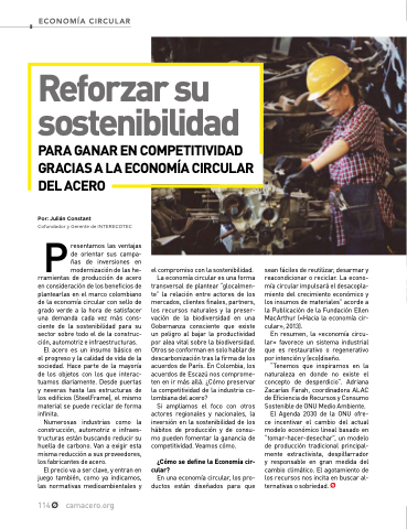 para su sector sobre todo el de de la la construc- ción automotriz e e e e e e e e e infraestructuras El acero es es es un insumo básico en el progreso y y la la la calidad de de de vida de de de la la la sociedad Hace parte de de de de la la la mayoría de de de los los objetos con los los que interac- tuamos diariamente Desde puertas y neveras hasta las estructuras de de los edificios (SteelFrame) el el mismo material se puede reciclar de de forma infinita Numerosas industrias como la construcción automotriz e e e e e infraes- tructuras están buscando reducir su huella de carbono Van a á a a a a a a a a exigir est esta misma reducción a a a a a a a a a a sus proveedores los fabricantes de acero El precio va a a a a a a a a a a ser clave y y entran en en juego también como ya indicamos las normativas medioambientales y y el compromiso con con la la sostenibilidad