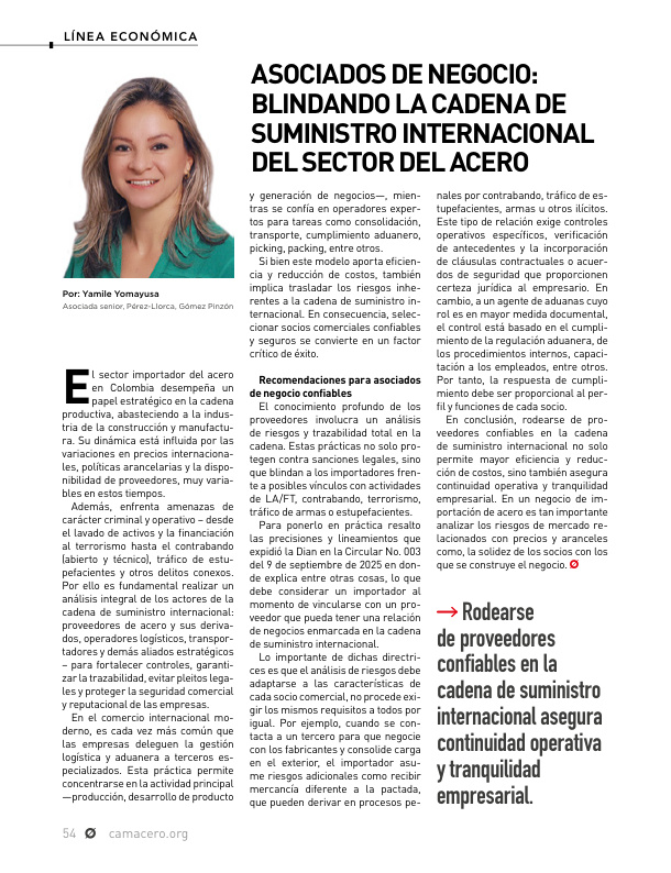 mente en en la fabricación fabricación de de de varios ti- pos de de de de de tuberías de de de de de acero fabricación fabricación fabricación de de de de de alambres y fabricación fabricación de de de de de barras corrugadas de de de construcción Posteriormente tuve conocimien- to to de de de de las normas de de de de requisitos para sistemas de de de de gestión de de de de calidad cuya implementación y y certificaciones lle- vé a a a a a a a a a a a cabo en en varias plantas de de de trans- formación de de de de productos de de de de acero He seguido de de de de de de cerca la la evolución de de de de de de las normas de de de de de la la la industria del del acero y comparto con colegas del del del sector que la la la raíz del del nacimiento de de de la la la normali- zación fue fue la la industria Primero el el foco fue fue asegurar la la calidad del del producto final a a a a a a a a través del del cumplimiento de de de de de los requisitos de de de de hecho la la mayoría de de de de veces la la inspección se se hacía una vez termi- nada la cadena productiva y solo se se rechazaban o o o o o o o aprobaban los lotes de de La normalización en la industria colombiana es tan relevante como la industria misma producción a a a a a través de tablas milita- res (1) Luego con los años y la la la introduc- ción de la la la estadística a a a a a a a a a a a la la la calidad el aseguramiento técnico se se comple- mentó con con con el el control en en en en los procesos productivos el el enfoque se amplió con con con normas de de proceso ya no no solo a a a a a a a a a a a a las características de de de calidad variables y y atributos de de de de de producto sino también en las capacidades y y desviaciones de de de de de de proceso antes durante y y después de de de de de la fabricación Además de de de asegurar los procesos entendimos que estas capacidades de de procesos ya controladas y y y medi- das das funcionaban como un un sistema y y y y se adoptó la la gestión por procesos y y la la la mejora continua con con con su conocido PHVA como estándar para las orga- nizaciones Esto liderado desde 1987 interna- cionalmente por la la ISO (Organización Internacional para la la Estandariza- ción) y y en en Colombia por el Icontec quien ha revisado avalado y y difundi- do do do esta familia de de normas de de la la serie 9000 ya muy conocida en en el sector in- dustrial aunque no no necesariamente implementada como se quisiera Hoy la la norma vigente para la la cer- tificación de de de los sistemas de de de gestión de de de calidad en las organizaciones es es es la la NTC ISO 9001 2015 En el el mundo de de la normalización del acero existen varias organiza- ciones una que ha sido referente a a a a a a a a a a a a a nivel mundial y de la la cual estudié muchas normas para la la la transforma- ción ción de de productos de de acero es la la or- ganización ASTM (American Society for Testing and Materials) la cual es es
